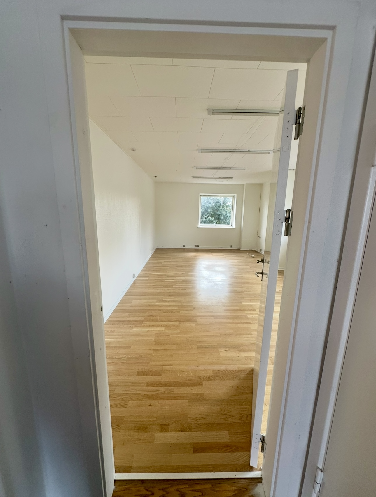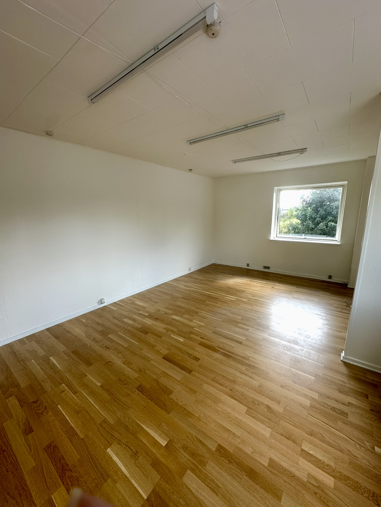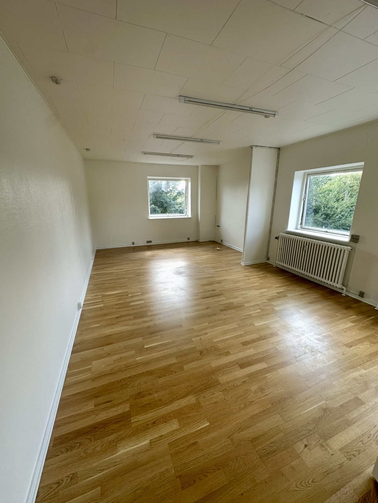 Lejemålet er 40 m2 og ligger på 1. sal. Der er fælles toilet lige ved lejemålet, som deles med 2 andre lejere. Ejendomskontoret står for rengøring.